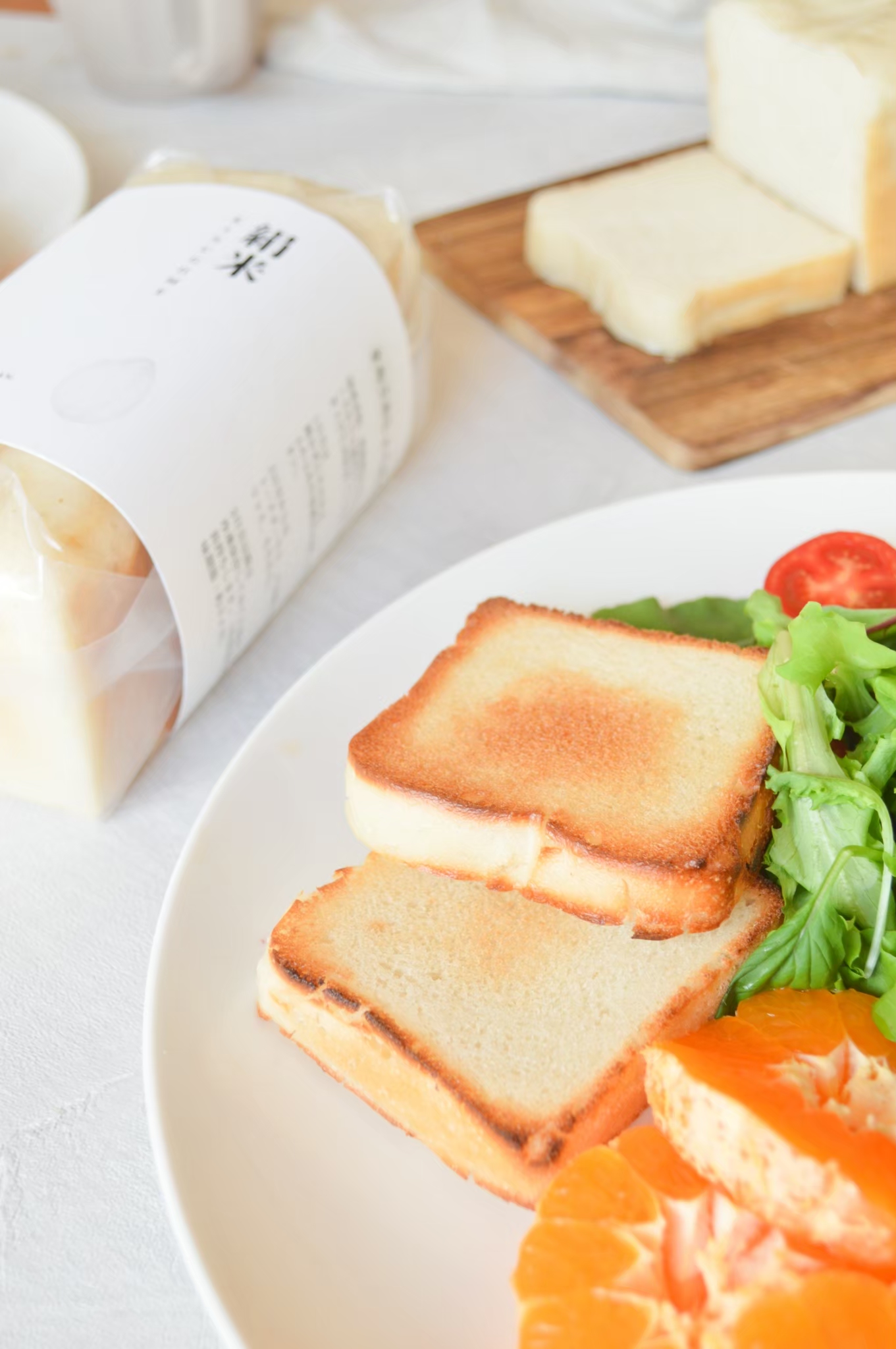 独自の製法で焼き上げるため、ふんわりもっちりした食感をお楽しみいただけます。自然な甘みも魅力のお米食パンを是非お楽しみください。