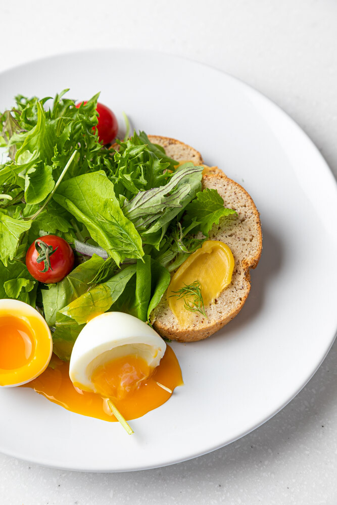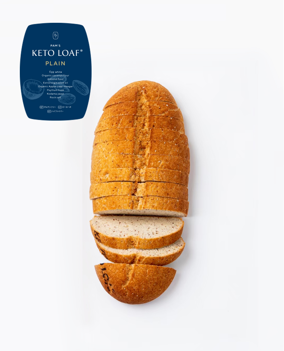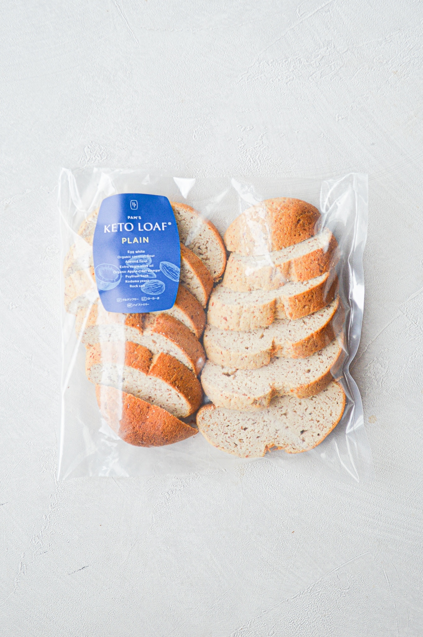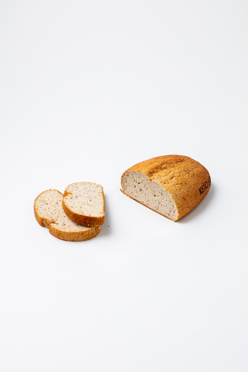 皮付きアーモンドパウダー、ココナッツパウダーをベースに、たっぷりのメレンゲを加えて焼き上げたグルテンフリーかつ低糖質パン「ケトローフ」。ハードな見た目とは裏腹、しっとり滑らかな口どけです。
